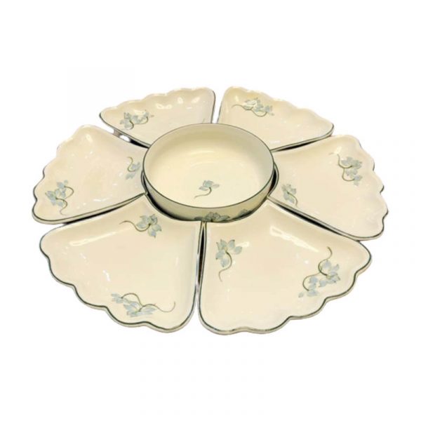 Bộ bát đĩa Bát Tràng hoa mặt trời mâm cúng gia tiên sen xanh