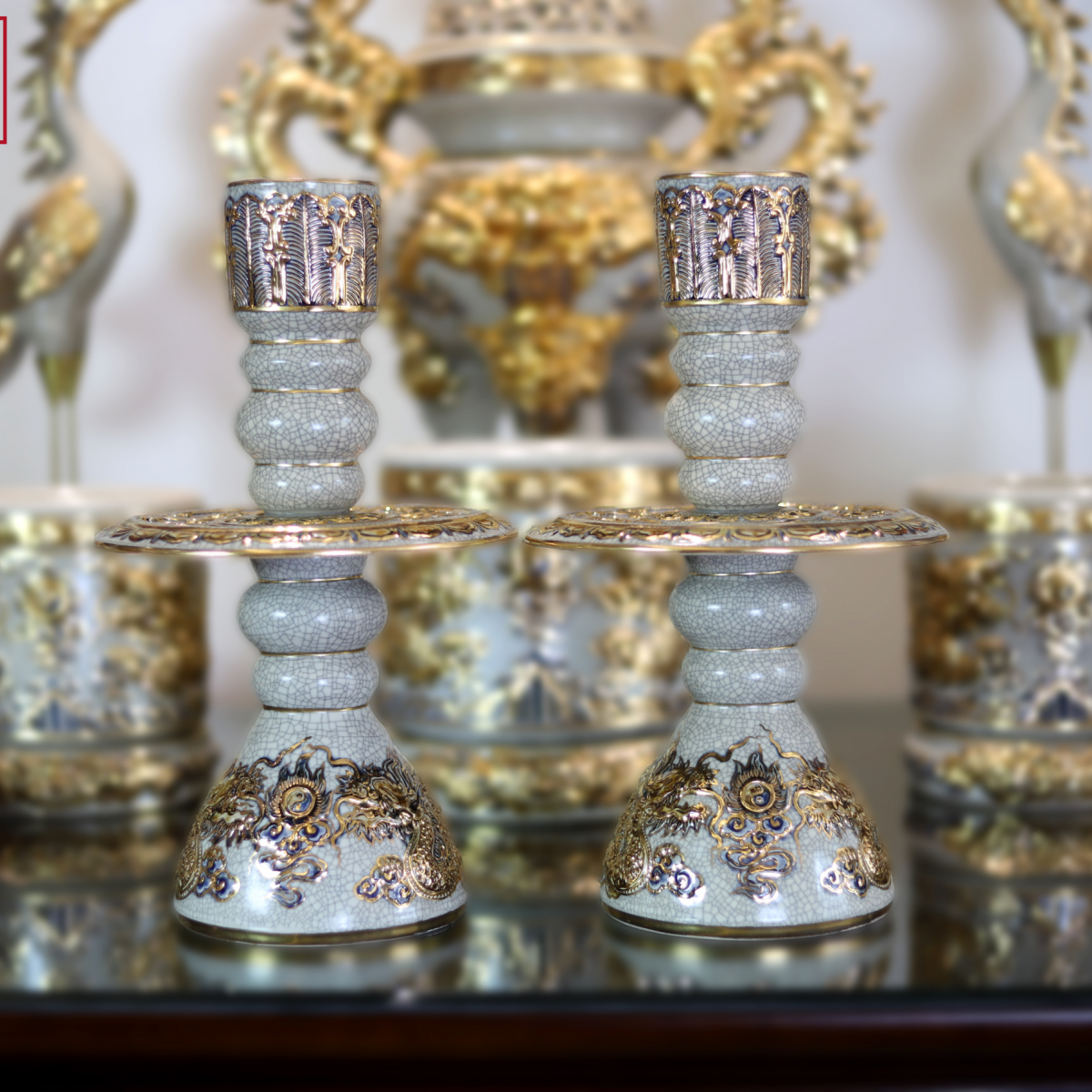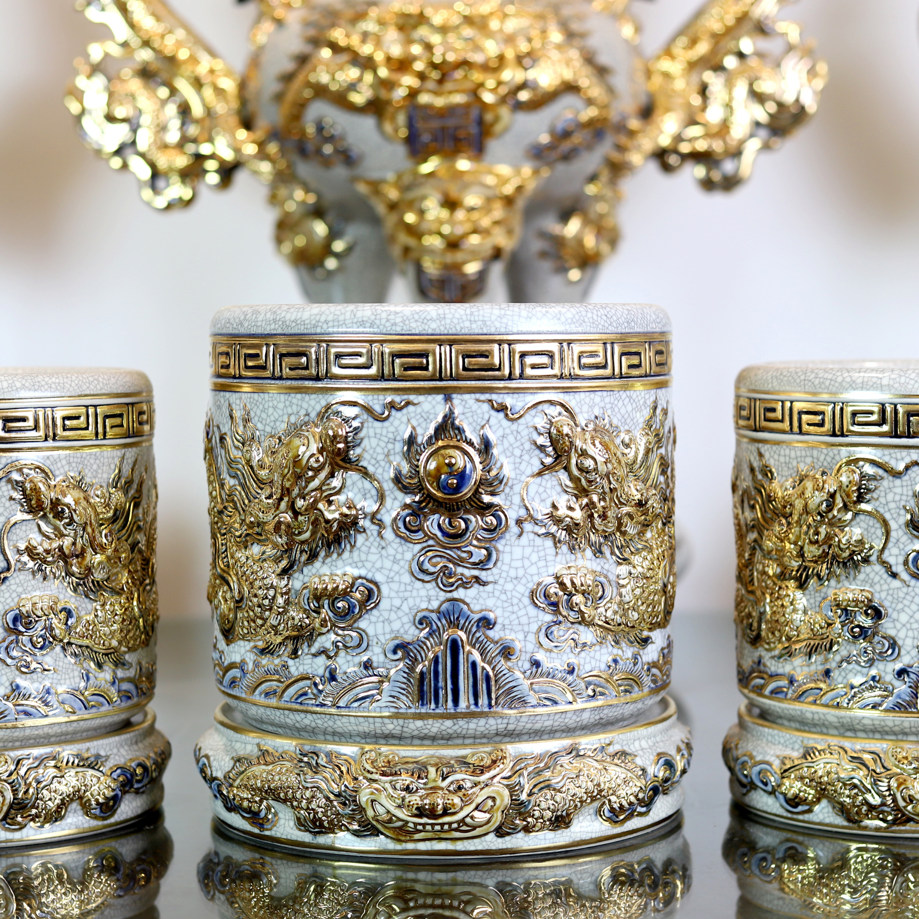 Bộ đồ thờ men rạn vẽ vàng 24k